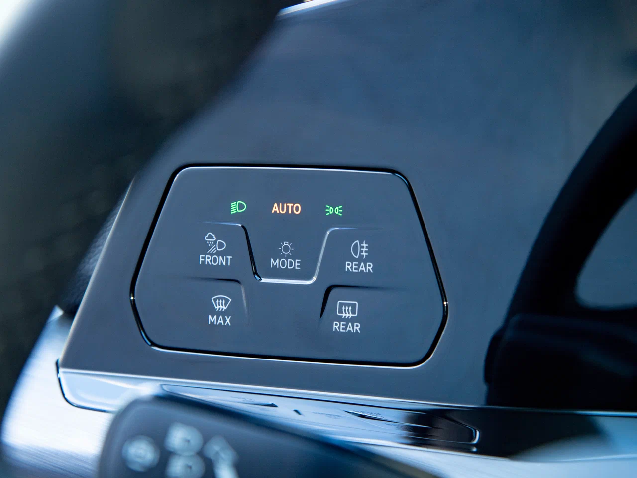 • Спортивное мультифункциональное рулевое колесо с кожаной отделкой и обогревом, с подрулевыми переключателями передач и сенсорными кнопками